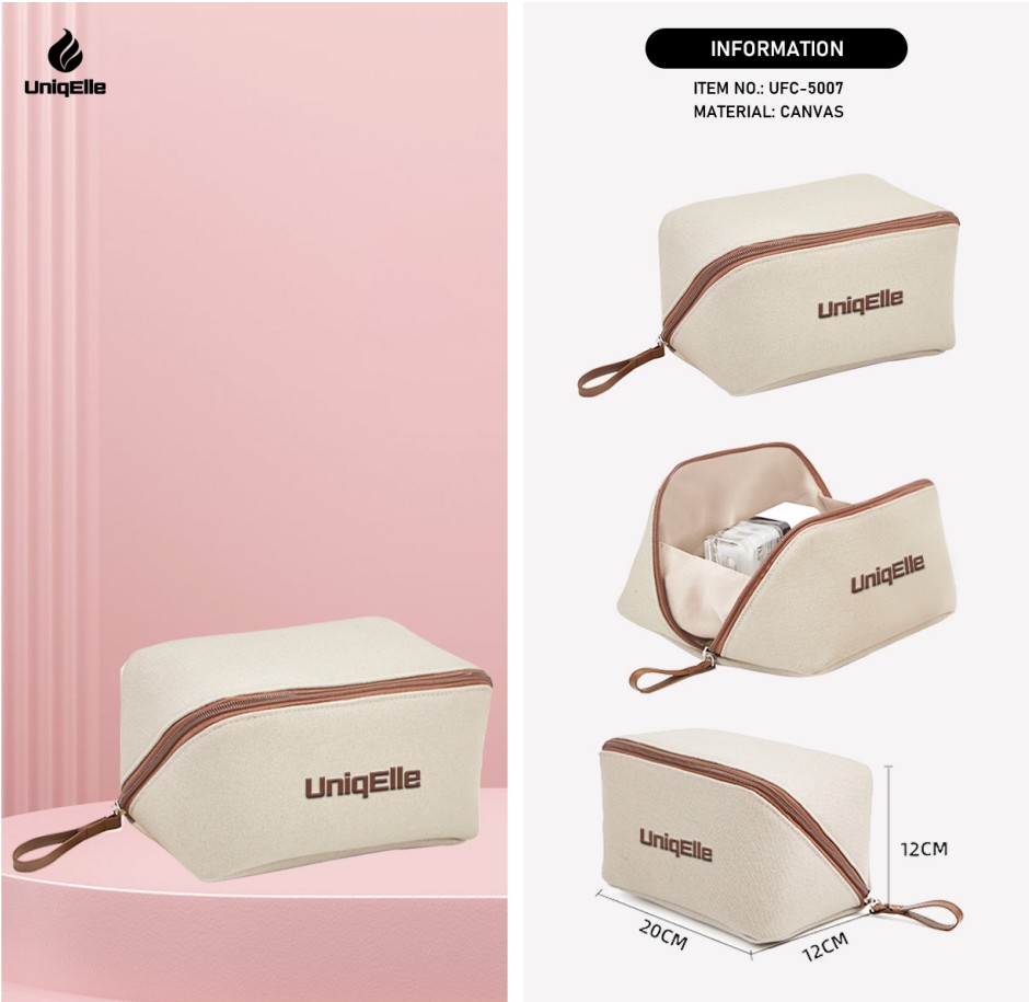 Our Canvas Makeup Bag blends durability and style, perfect for beauty enthusiasts. Crafted from high-quality canvas, it’s reusable and eco-friendly. Customizable with logos or designs, it suits brands and personal use. Spacious enough for daily makeup, compact for travel. Wholesale options available—practical, stylish, and brand-boosting.
