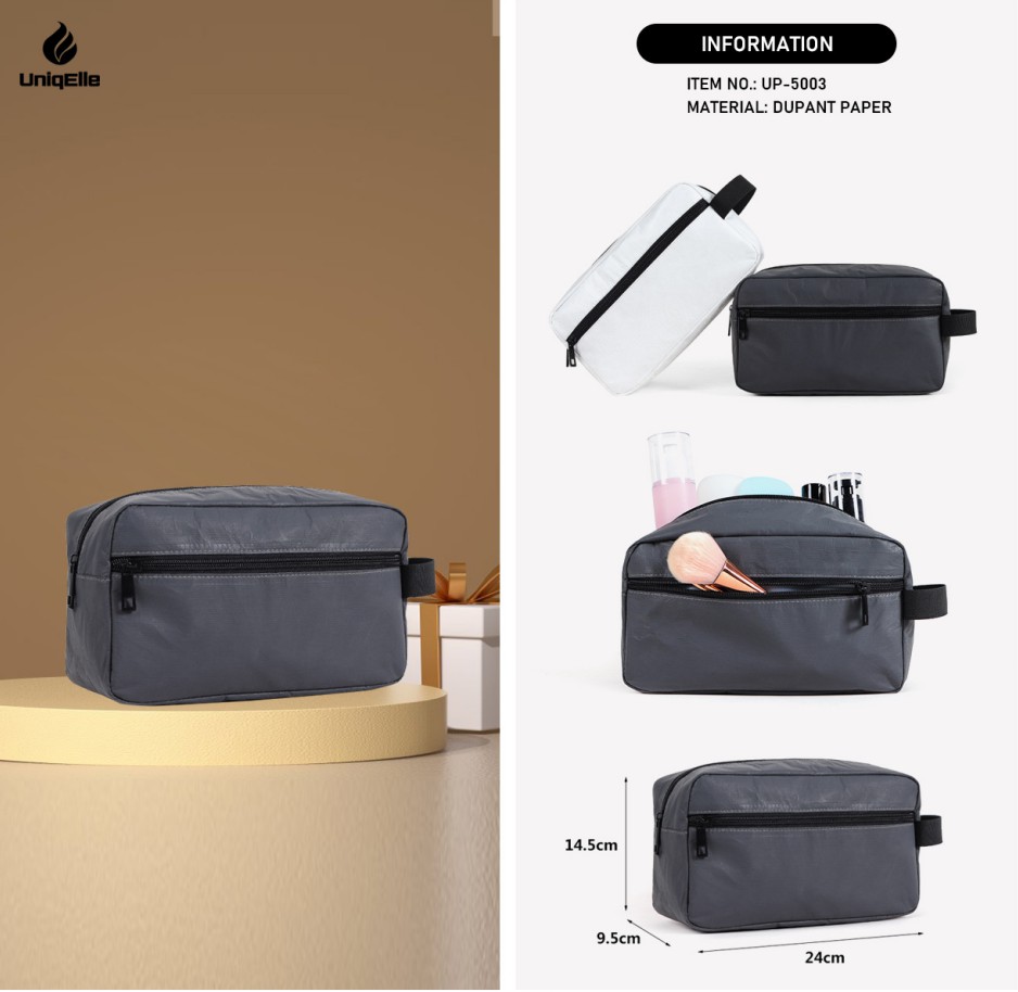 Whether you’re a sustainable beauty brand bundling eco-friendly products, a salon gifting clients reusable organizers, or a travel agency curating “zero-waste travel kits,” this Dupont Paper Cosmetic Bag balances functionality, sustainability, and brand identity. It’s wholesale-ready with strict quality checks (each bag is tested for waterproofing and hardware attachment) and fast turnaround, meeting the “timely delivery for green promotions” from business clients.