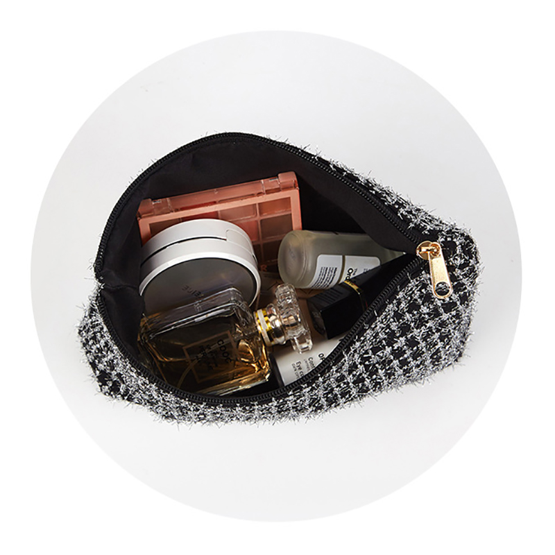 The fabric’s durability ensures it withstands daily use and travel, while the secure zipper closure keeps cosmetics, beauty tools, or mini skincare products safe. Its medium size fits essentials like brushes, lipsticks, and serums, balancing portability with functionality for both daily routines and getaways.